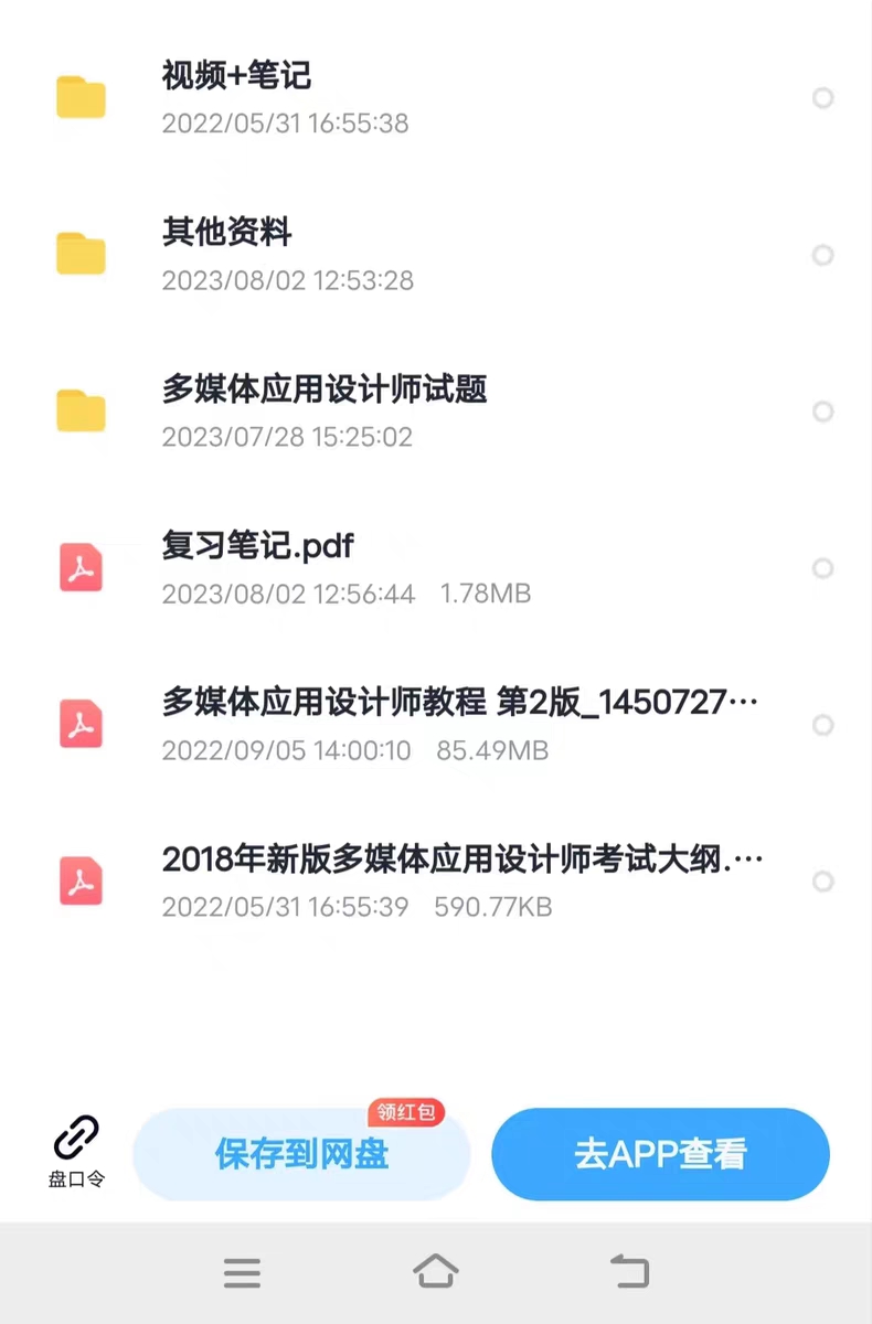 指定的官方参考教材为李振华主编的《多媒体应用设计师教程》第2版,丁向民...编著的《多媒体应用设计师教辅教程》第3版以及2018年审通过的考试大纲。大家可以根据自己的需要和实际情况选择适合自己的备考材料。