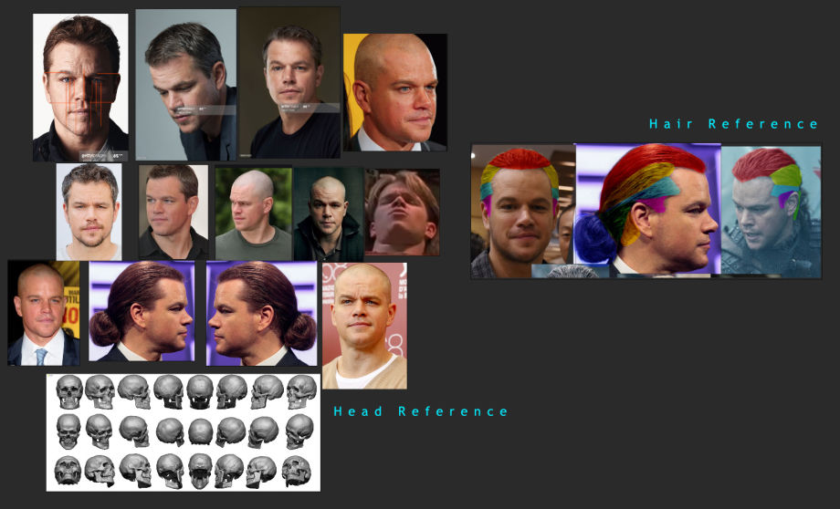 在 ZBrush 中建模,在 Substance Painter 中制作纹理,在 XGen 中进行头发修饰,在 Maya 中自定义面部/身体装备/动画,戏剧性的灯光、材料、VFX、后期编辑、在UE4中进行最终渲染以描绘角色特征。在这之前,收集很多的中世纪防弹衣、Matt Damon的头部、头发、面部/相机动画、灯光和后期处理的参考资料。
