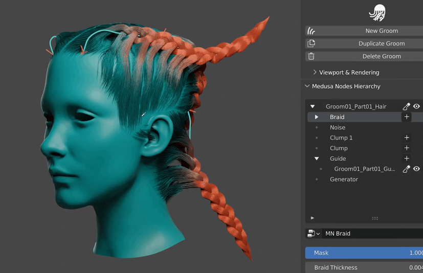 Medusa Nodes – Blender 程序头发系统 该插件具有几何节点节点组,旨在实现头发的真实变形和可视化。 借助插件自己的Medusa Nodes Hierarchy面板简化了节点组,可以在其中轻松查看和编辑所有不同的节点及其参数。 资源下载此资源下载价格为1.68V币,请先登录每天首页签到也能下载素材哟!如需要帮助请邮箱联系。微信扫描下方的二维码阅读本文
