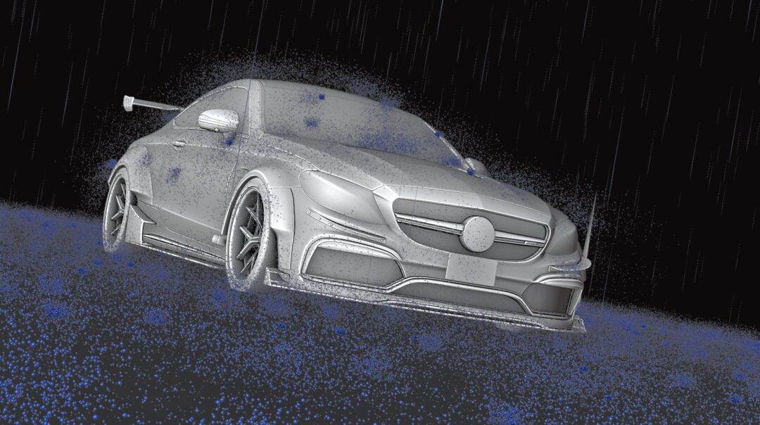 只有暴露于雨水的表面才会受到影响。有两种降雨分布方法可用,一种适用于较小的场景(基于项目总表面积的降雨分布,更准确),另一种适用于较大的场景(降雨分布按每个对象计算,更快)。