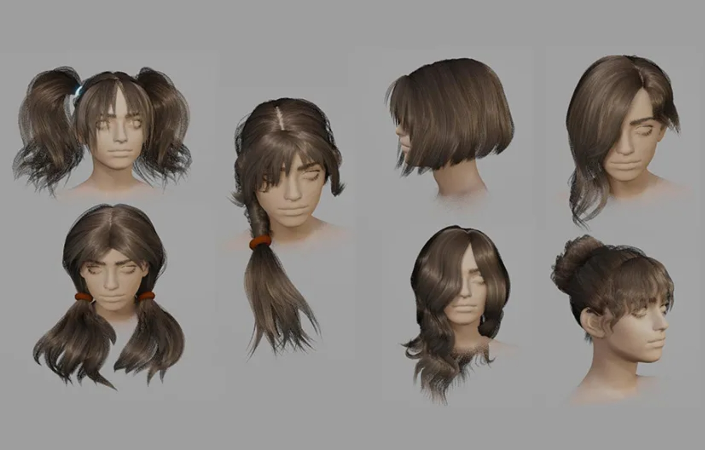 - 包含各种发型的头发库,