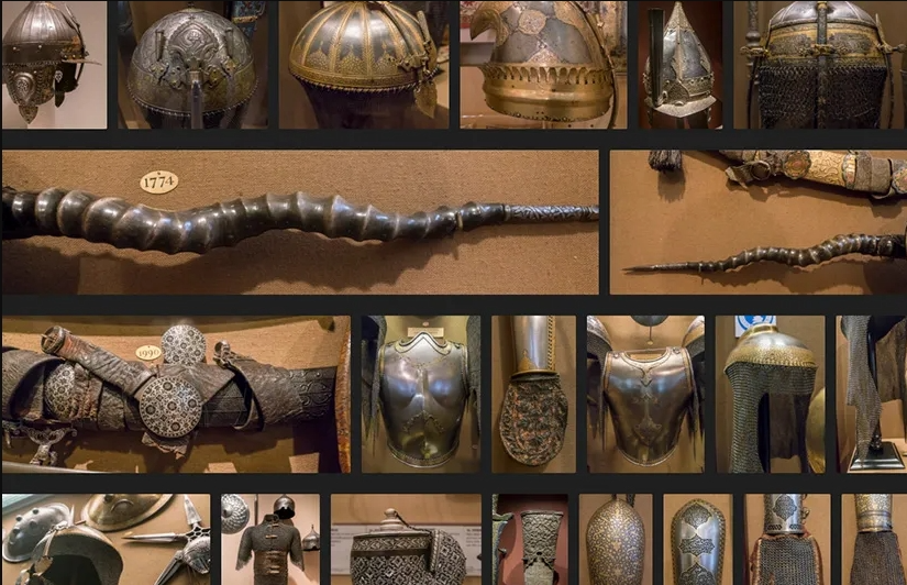 来自土耳其、印度、波斯、蒙古等东方各个国家和地区的历史武器、盾牌和铠甲。该套装的独特亮点包括精致的装饰性匕首、刀片和战斧。