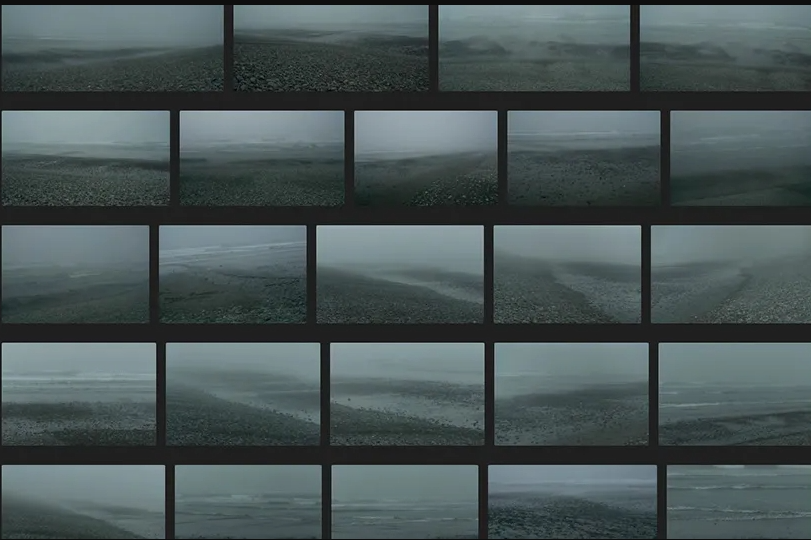 沿海环境在浓雾中拍摄,捕捉到了一种沉思、黑暗和不祥的情绪。参考类型包括:浓雾笼罩的荒凉海滩,雾气弥漫的海岸线上散布着根部粗糙的巨大死树,以及远处薄雾中被风吹过的令人毛骨悚然的森林线。