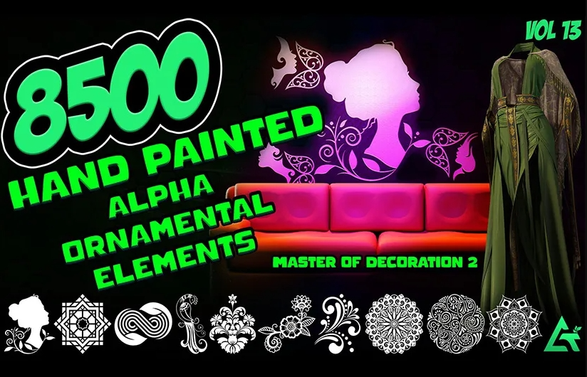 - 8500 个手绘 Alpha 装饰元素(50 个元素免费)包含:
