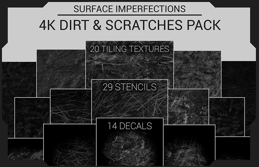 该包可以帮助您获得 3d 经常缺乏的真实感,包括各种不同的手指污迹、风化效果、通用污迹图案、特定指纹、灰尘和垃圾贴图。