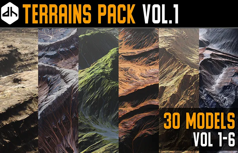 Terrains Mega Pack Vol.1 附带 25 个 HQ 地形模型,可帮助您快速设计漂亮的景观。非常适合视觉预览、概念艺术和绘景。每个地形都有一个精简版本。示例图像是在 Marmoset Toolbag 中制作的。包括地形卷。 1-5。