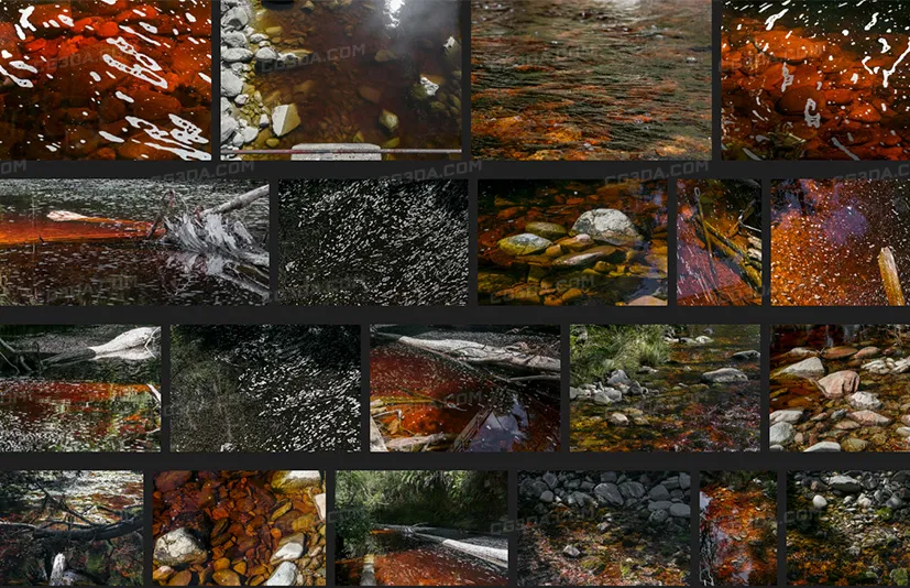 这是在新西兰南部拍摄的独特红色河流参考景象。丛林环境呈现出独特的血红色水流和诡异的表面纹理,同时还有腐烂的树木被郁郁葱葱的亚热带丛林所环绕。这个场景展现出一种与众不同的美感,让人不禁感叹大自然的神秘与壮丽。