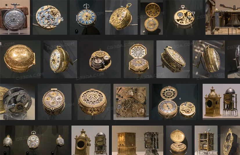 这是一组来自17世纪的黄金和银质装饰性发条装置、齿轮和其他小饰品。这些作品展示了早期现代英国复杂的机械和精美的工艺。非常适合用作蒸汽朋克或维多利亚时代设计的参考。让这些精美的发条装置为您的设计带来灵感。