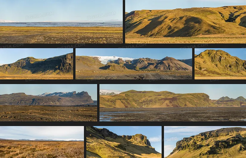 这个套装展示了冰岛干旱地区的山脉景观。这些山脉的气候干燥,呈现出特殊的景观特征。拍摄于不同的光线条件下,包括白天、黄金时段、日落和黄昏,为您带来独特而壮观的视觉体验。