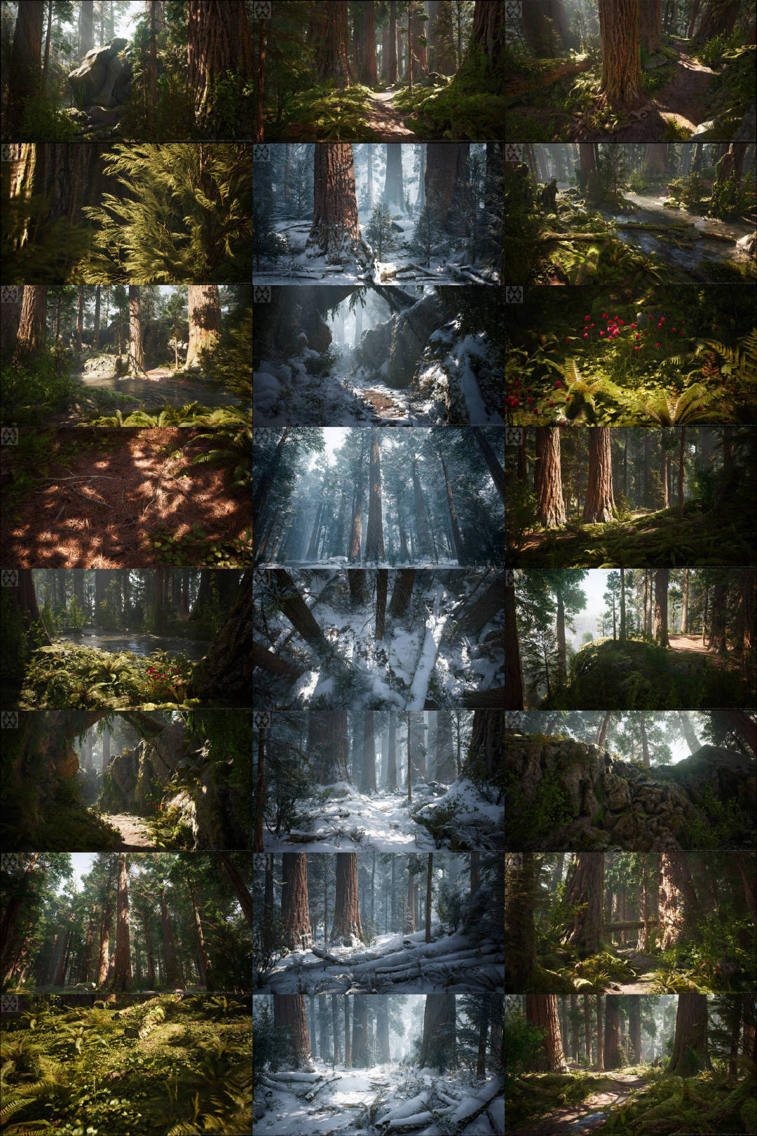 山地红木树,岩石,碎片,植物等的高分辨率模型和纹理。所有具有全套LOD的资产,经过调整,以最高的照片真实质量获得最佳性能。树木是英雄和画家的版本,两者都有大距离LOD来创造大片森林。完全设置的树叶演员有很多种,准备用植物,树枝和岩石资产绘制整个森林。完全可涂漆的地面材料,有4种不同的表面类型。还包括用于创建河流和溪流的动态水材料以及完全可编写脚本的风系统和程序性雪/冬季着色器系统。所有材料都具有高度可调性,可以使用新的纹理轻松定制,以满足项目的特定需求。