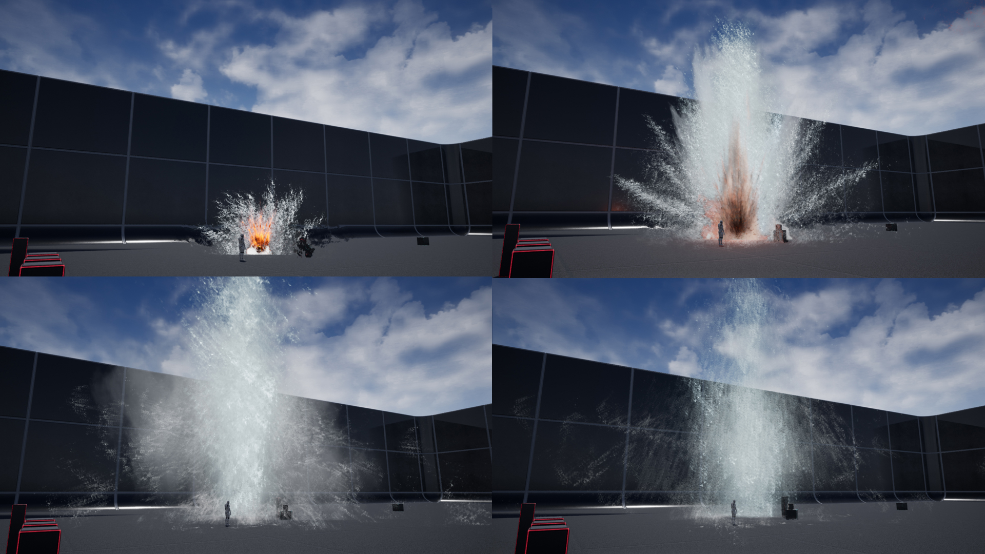 水面,液体撞击地面并爆炸,液体在空气中爆炸。